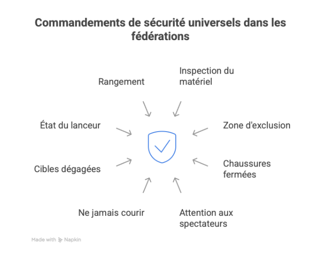 La règle d’or est simple : on ne lance jamais si quelqu’un est devant ou dans la zone de récupération. Cela semble évident, mais l’habitude crée la négligence. Les clubs sérieux imposent un directeur de tir qui donne les ordres : « Pas de tir ouvert », « Lancez », « Cessez le feu », « Aux résultats ». Tant que l’ordre « Aux résultats » n’est pas donné, personne ne franchit la ligne de tir. C’est une discipline militaire nécessaire.